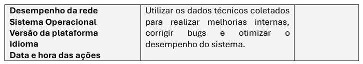 funcionamento dos nossos sistemas e a prestação dos nossos serviços. Entretanto, em
