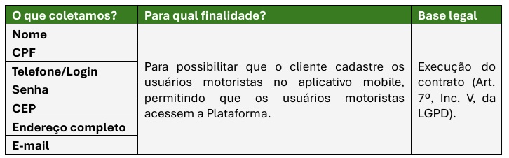 tempo real. Para isso, coletamos e tratamos diversos dados pessoais.